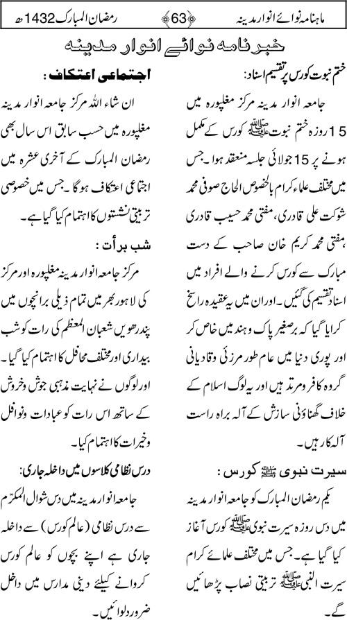 نوائے انوار مدینہ - اگست ایڈیشن 2011