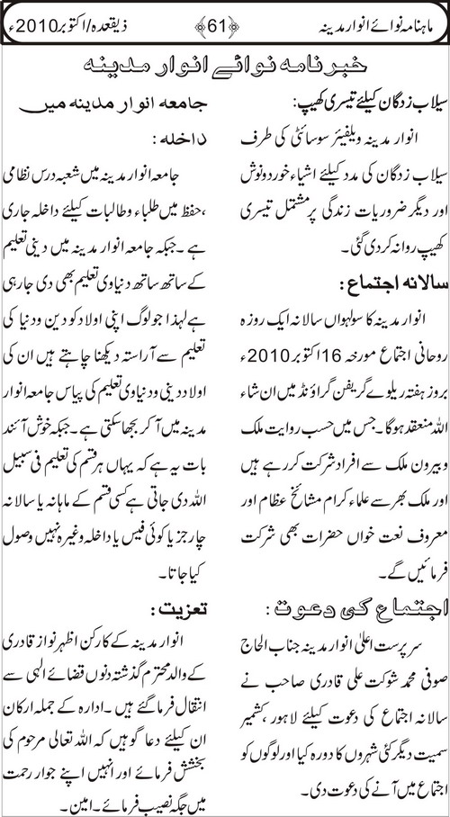 نوائے انوار مدینہ - اکتوبر ایڈیشن 2010